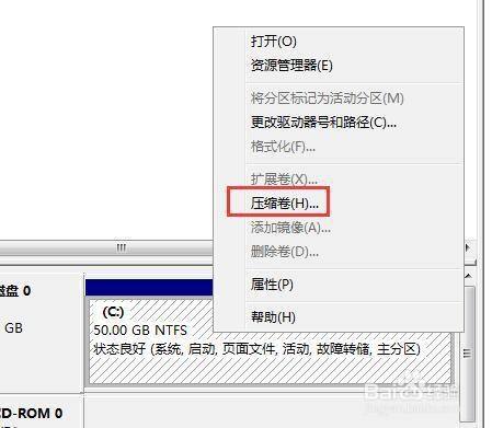 然后右键C盘,选择【压缩卷】。