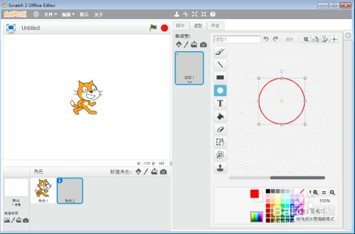 我们就在scratch中绘制好一个红色中间渐变圆形。
