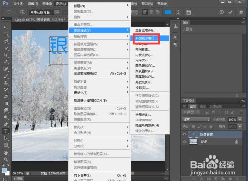 点击图层,选择图层样式下的斜面和浮雕;