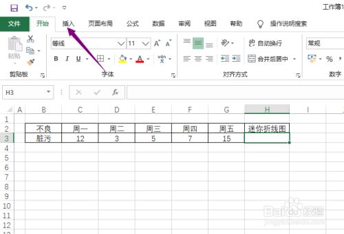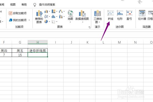 先建造一个表格,点击选中迷您折线图下方的单位格。