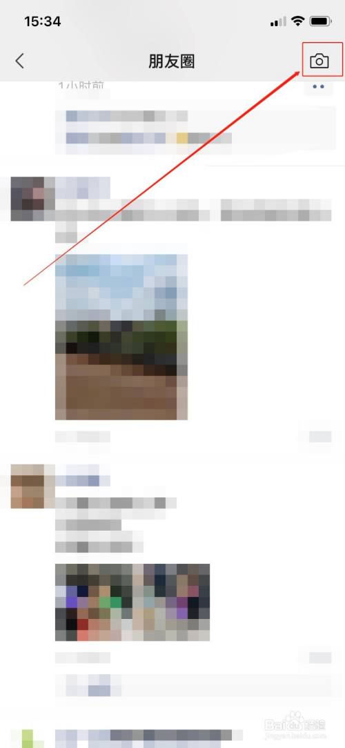接着咱们进入微信朋友圈,点击右上角的相机图标。