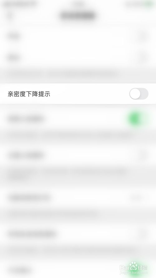 “亲密度下降提醒”后面的圆点变为绿色即暗示觅伊开启亲密度下降提醒当作功