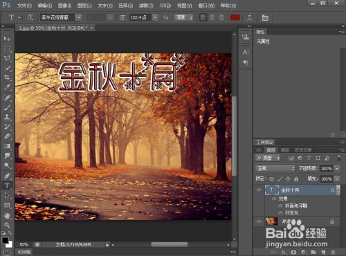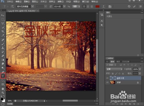 点击文字东西,输入金秋十月;