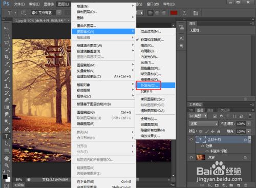 点击图层,选择图层样式下的斜面和浮雕;