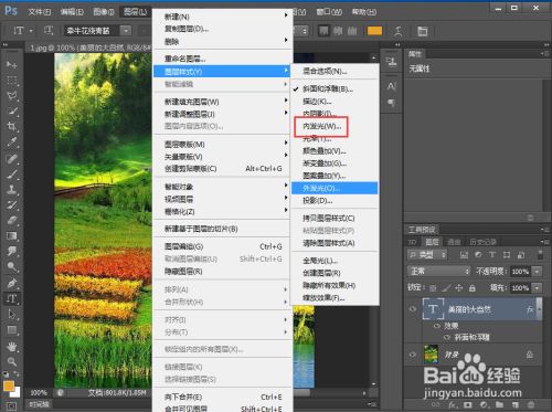 点击图层,选择图层样式下的内发光;