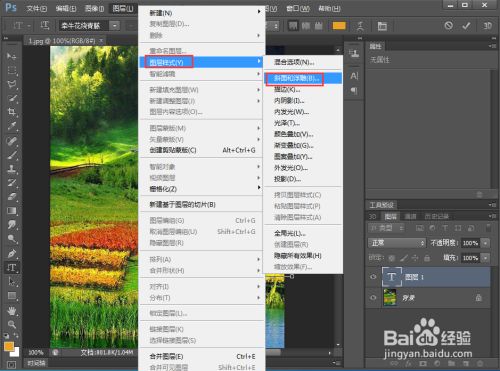 点击图层,选择图层样式下的斜面和浮雕;