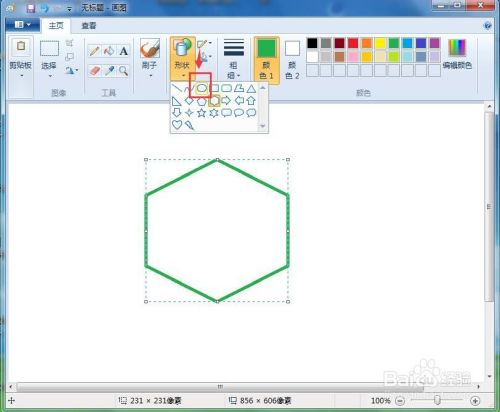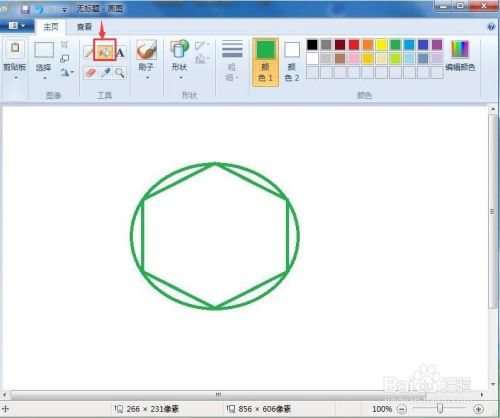 点击用颜色填充东西,将圆形和六边形订交的六个扇形部门填充上绿色;