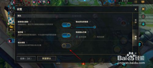 在手游镜头处,点击右侧灰色按钮。