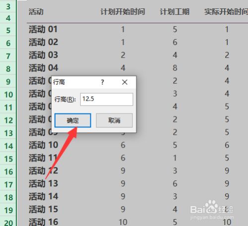 在弹出的“设置行高”界面中,输入响应的数值来实现。