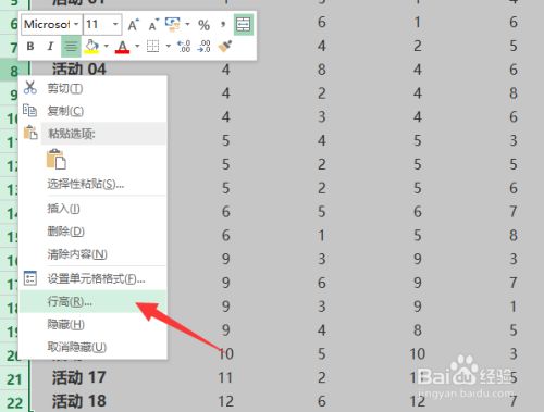 方式一:针对如图所示的表格,我们可以在表格械侧列表中的行高进行调整。