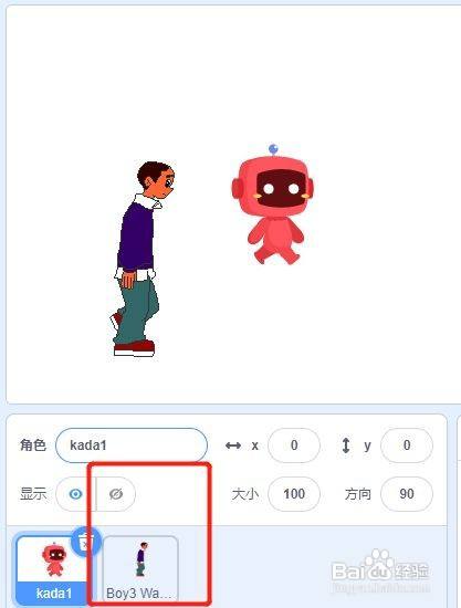 第三步打开我们本身需要编纂的scratch软件,在脚色画面,点击上传脚色。