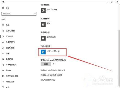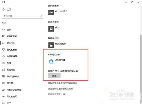 8、在win10的系统设置中,设置今后,默认浏览器点窜当作此外。