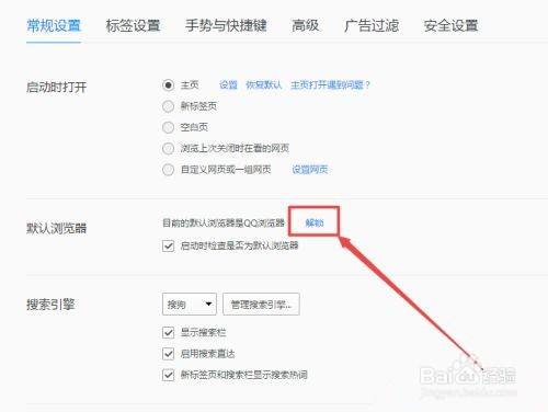 4、若是这个设置默认浏览器设置为锁定了,点击解锁。