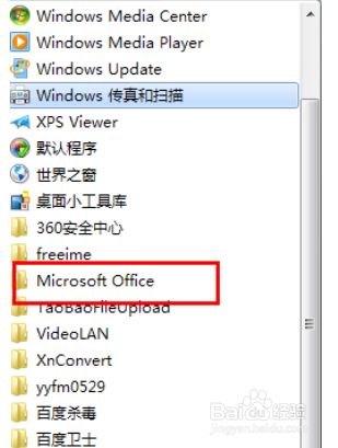在所有程序中找到Microsoft office