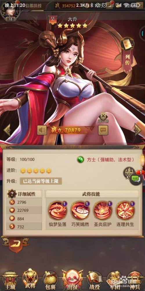 大乔在游戏中是一个神通型辅助术士,有仙梦坠落,巧笑嫣然,圣炎呵护,连理共生三个技术,时辰作为后排。