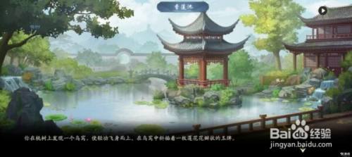 蜀道路上找到第一把钥匙,在清平乐凳子下找到第二把钥匙,菩萨蛮房梁上找到第三把钥匙,喷鼻莲池树上找到第四把钥匙