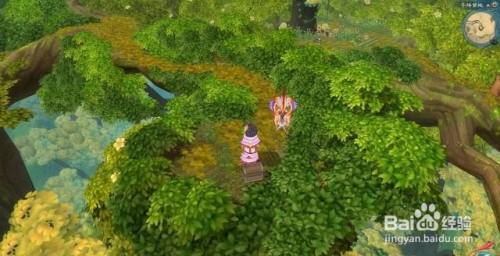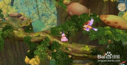 接下交往海说神聊走,来到一棵长满蘑菇的大树前,爬上大树可以去到千华梦地的绝顶见到伶叶。