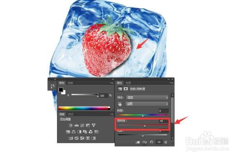 打开色相饱和度,加强草莓的颜色,立体感就有了。