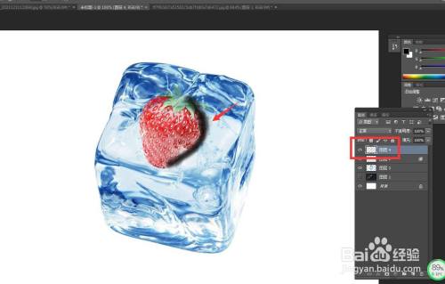 按住CTRL键,选择草莓图层,点击预览图,调出选区。