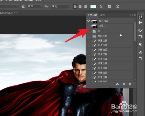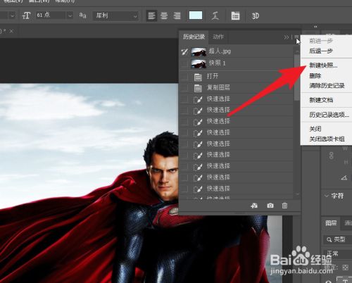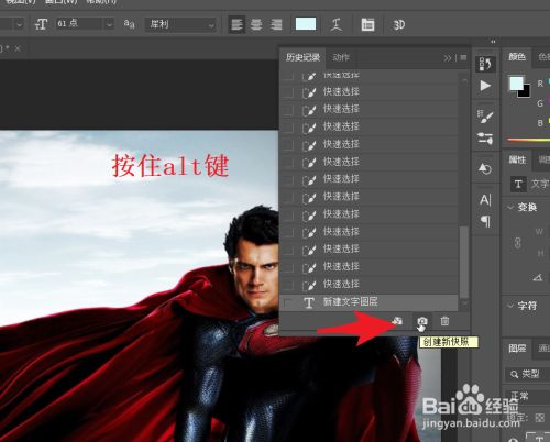 点击需要建立快照的位置,例如下图的新建文字图层。