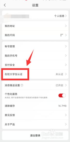 随后点击【在校大学生认证】。(如图所示)