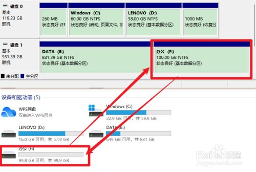 完当作后,在 磁盘办理器中,就能看到我们适才所分的区了