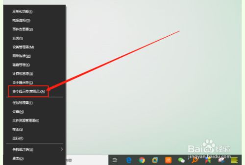 4.接着我们同时按下”win+x打开埋没菜单,点击“号令提醒符(办理员)”。