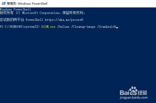 5.接着我们打开号令页面后,输入“DISM.exe /Online /Cleanup-image /Scanhealth”并按下回车,运行完毕后封闭页面。