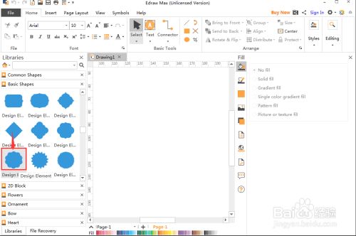 2、进入感激卡符号库中,找到根基图形,选中花边圆形;