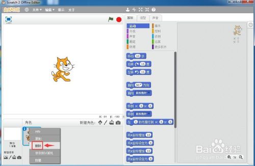 在小猫上按右键,点击删除,将小猫这个脚色删除失落;