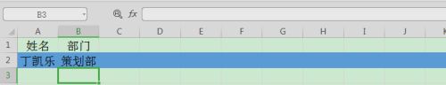 在部分列(B列)输入筹谋部,敲击回车确认,这一行的底纹就主动变为蓝色。