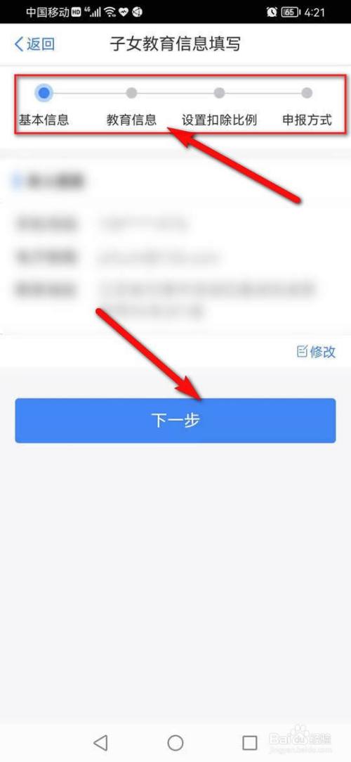经由过程点击“下一步”,别离据实完当作“根基信息”、“教育信息”、“设置比例”及“申报体例”即可完当作填报。