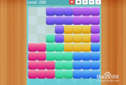 最后放上橙色拼块,放在紫色拼块的左侧挨着,如图,这样就过关了。