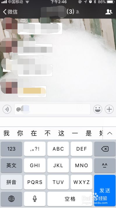 输入@符号之后,后面就可以选择老友的微信。