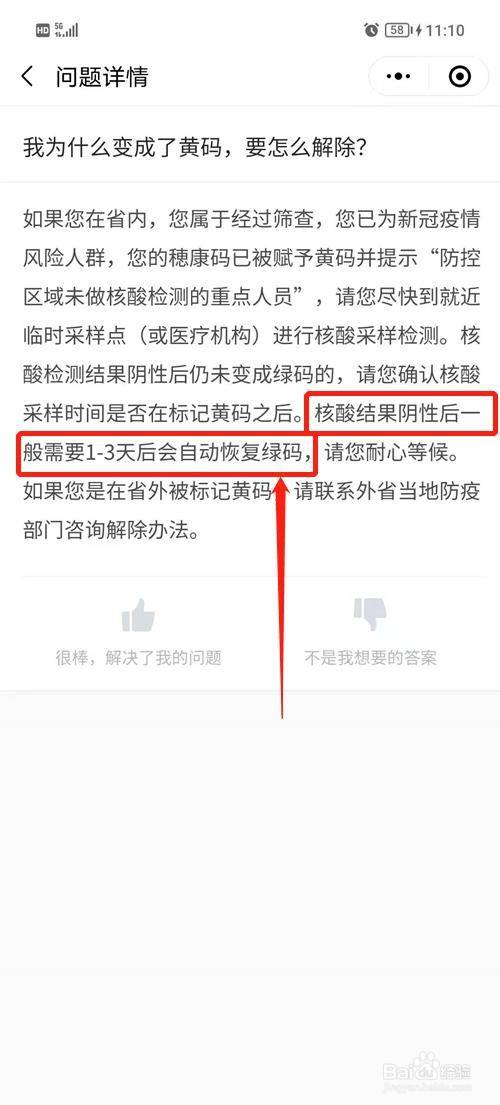 最后可以看到“核酸成果阴性后一般需要1~3天后会主动恢复绿码”,如下图所示。