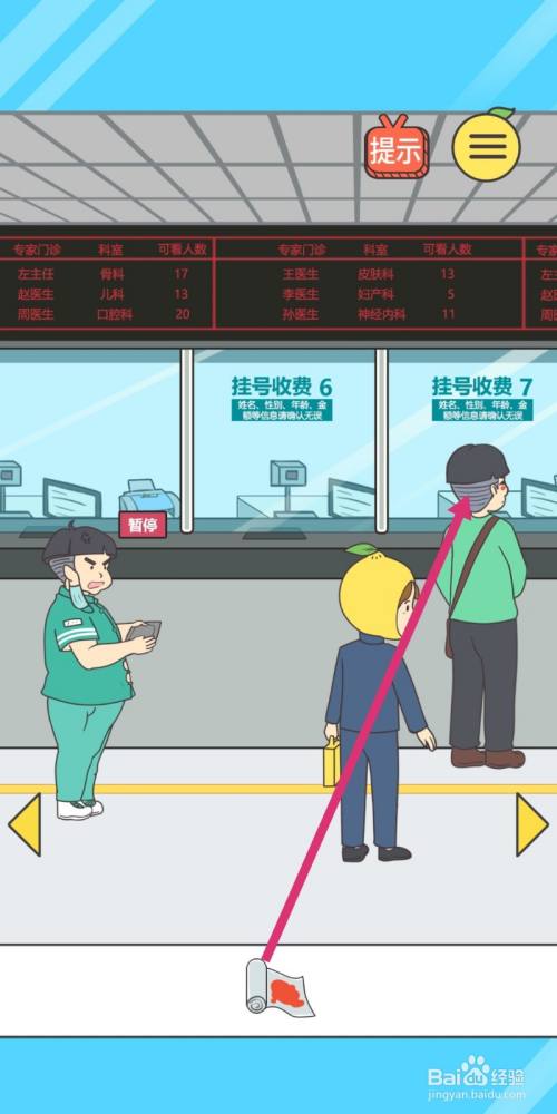 首先,点击获得暂停牌后的【红笔】,再点击拿到护士手里的【纱布】。