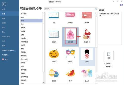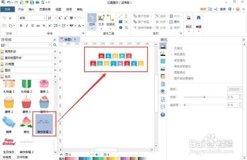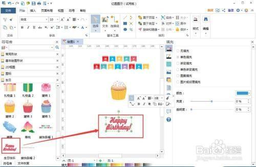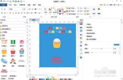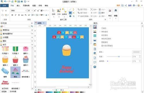 8、第八步一张生日贺卡建造好了,用近似方式,可以在亿图流程图建造软件中建立良多分歧气概和内容的贺卡。