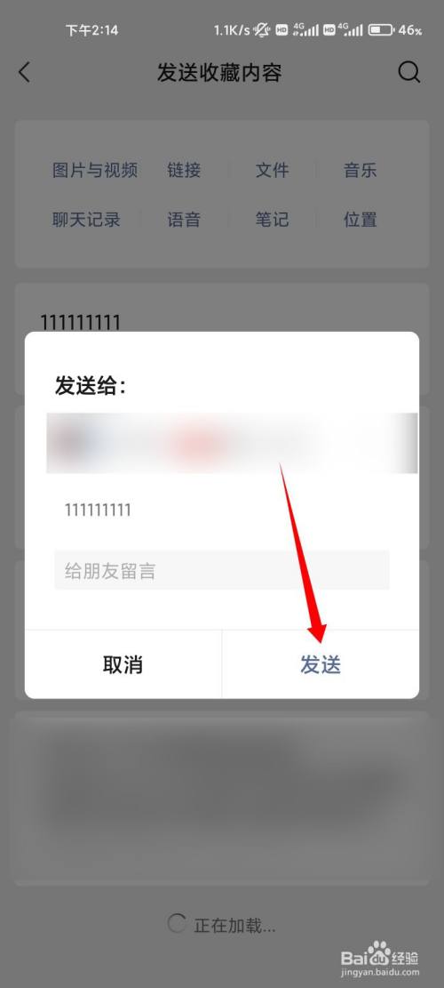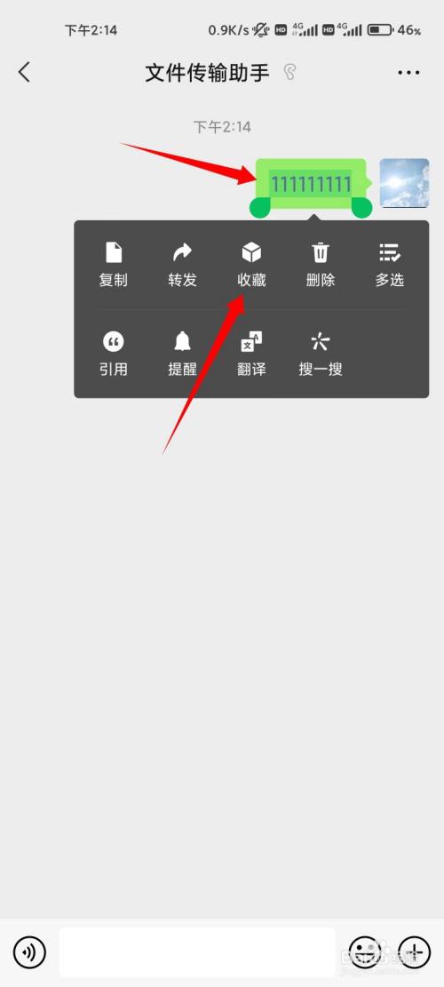长按上面发送的动静,在弹出的菜单中点击保藏的选项。