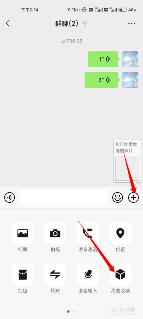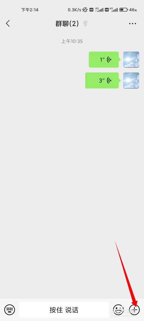 在聊天页面,点击右下角的加号。