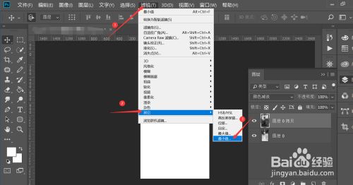 打开ps软件,点击图像菜单栏,选择调整,选择去色信息