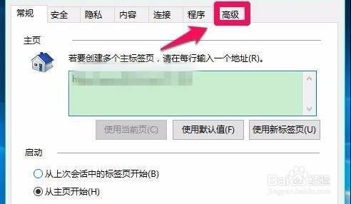 3、在Internet 属性窗口,我们点击高级。