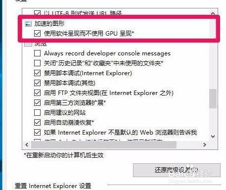 4.加快的图形 - 利用软件呈现而不利用GPU呈现前面的复选框内打了勾。