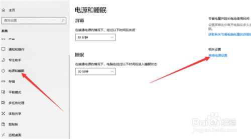 2、找到电源和睡眠,选择其他电源设置。