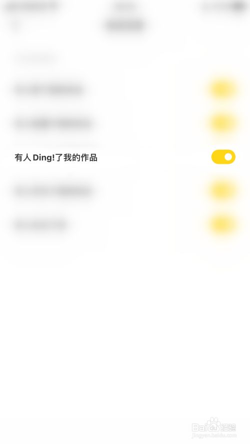 推送设置界面点击“有人Ding!了我的作品”后面的圆点