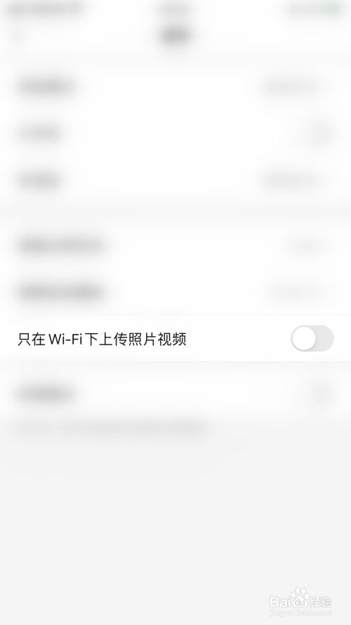 通用设置界面点击“只在Wi-Fi下上传照片视频”后面的圆点