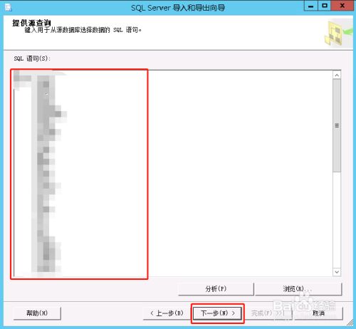 打开如下图界面,输入SQL查询语句,然后点击下一步按钮