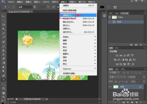 点击滤镜,选择滤镜库;