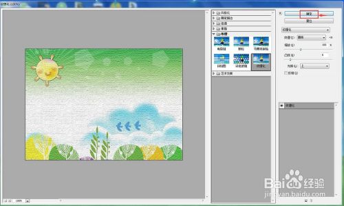 在参数设置对话框中,设置好纹理样式,如粗麻布,缩放比例等,然后按确定;