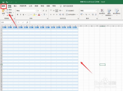 首先,我们打开excel,如下图,我们需要将蓝白相间的表格区域打印在一张纸上,我们首先选择左上角的【文件】。