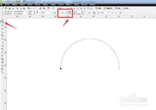 东西栏中选择弧线,调节端点的位置设置弧线。
